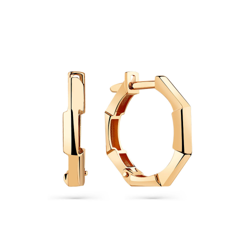 Оригинальность объёмных серёг из красного золота 585 пробы, заключается в их не традиционном исполнении с четкими преломлениями линий, что позволяет свету играть на их рельефной поверхности, придавая ещё больше блеска
