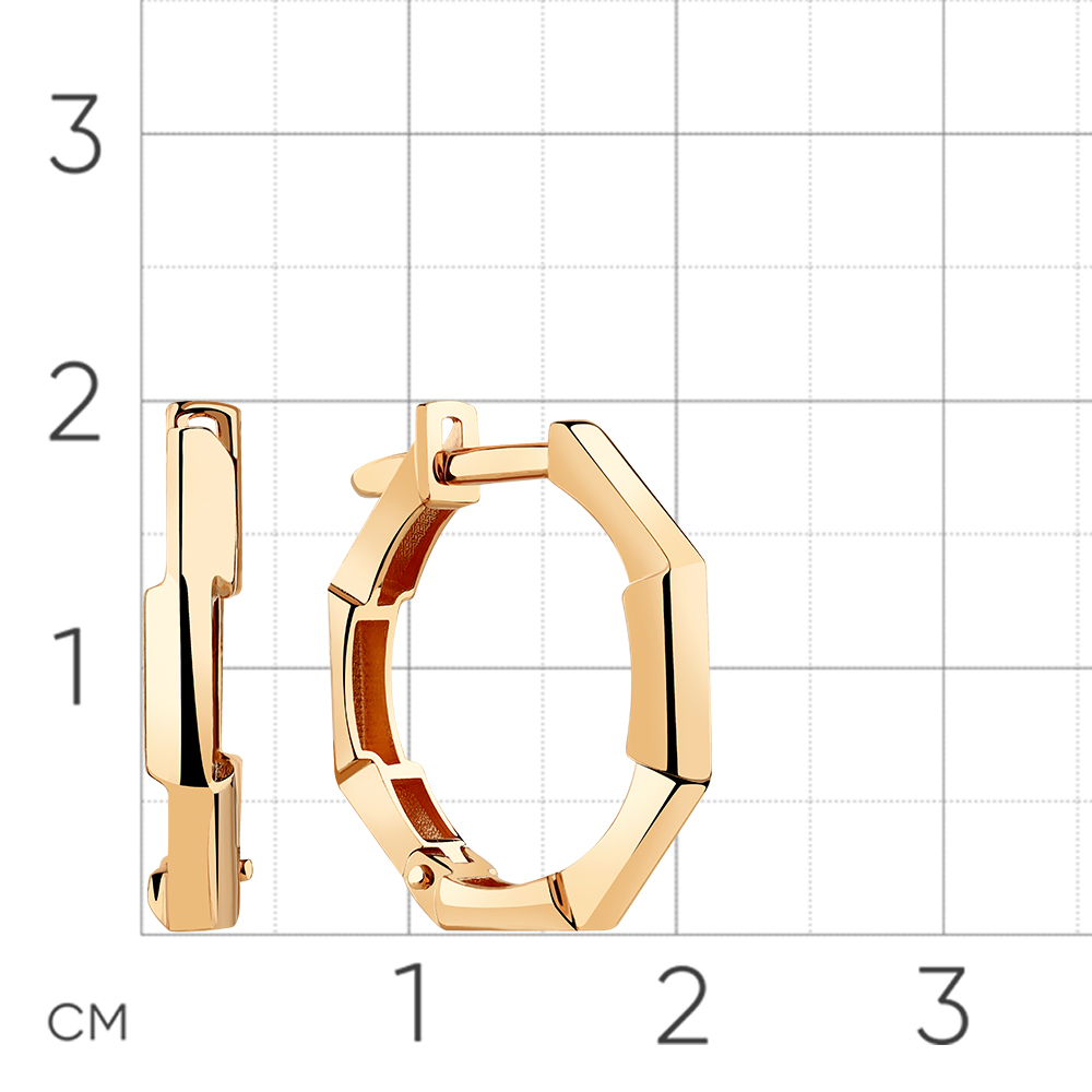 Оригинальность объёмных серёг из красного золота 585 пробы, заключается в их не традиционном исполнении с четкими преломлениями линий, что позволяет свету играть на их рельефной поверхности, придавая ещё больше блеска. Тип замка - английский, самый надежный и удобный.