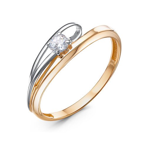 Кольцо украшено сверкающим фианитом, блеск которого подчёркивает идеальное сочетание красного и белого золота 585 пробы