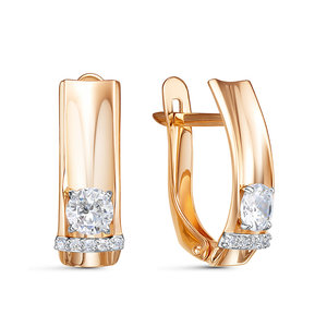 Стильные серьги, выполнены из красного золота 585 пробы, украшены сверкающими фианитами.