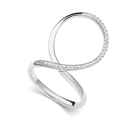 Изящное кольцо выполнено из качественного серебра 925 пробы, украшено сверкающими фианитами и отличается необычным дизайном