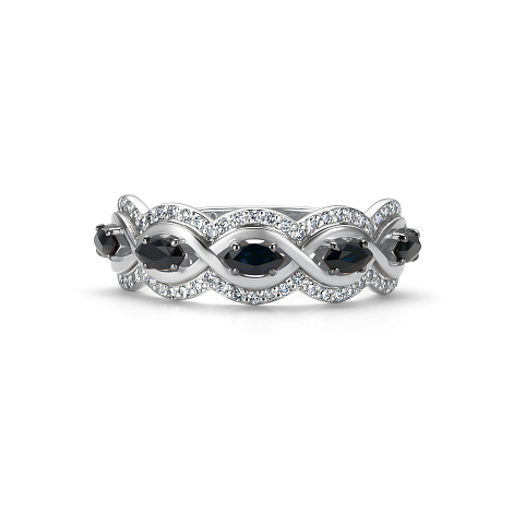 Элегантное кольцо выполнено из качественного белого золота 585 пробы, подчеркивающего его изысканность и благородство. Украшение инкрустировано сапфирами и бриллиантами, создающими игру света и добавляющими изделию особую привлекательность. Такое сочетание камней и металла делает кольцо прекрасным выбором для создания неповторимого образа, подчеркивая индивидуальность и стиль. Представлено брендом АЛЬКОР. Средняя характеристика камней: 5 Сапфир Маркиз 0.53 2/2, 62 Бриллиант Круг 17 0.209 2/3 В комплект поставки входит: