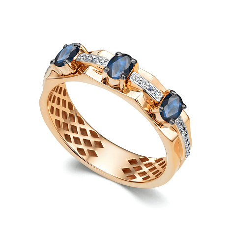 Кольцо, комбинированное золото, сапфир, проба 585
