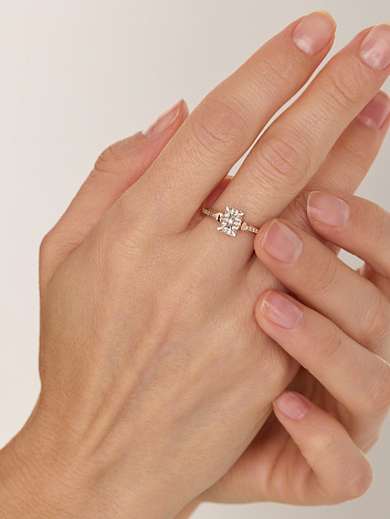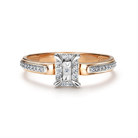 Оригинальное кольцо выполнено из благородного сочетания красного и белого золота 585 пробы, подчеркивая элегантность и индивидуальность