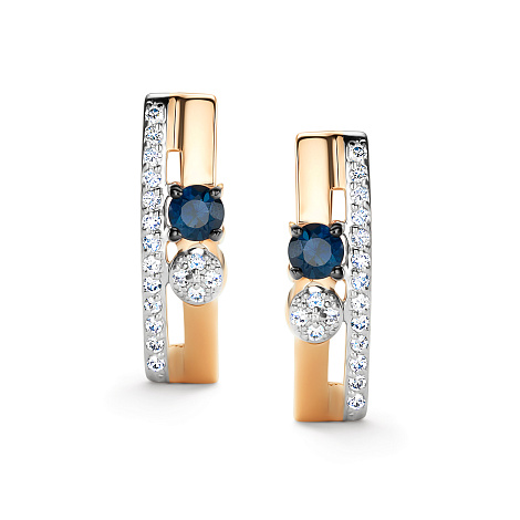 Изысканные серьги выполнены из благородного сочетания красного и белого золота 585 пробы, подчеркивая свою уникальность и утонченность. Украшением служат сверкающие сапфиры и бриллианты, создающие игру света и добавляющие украшениям роскоши. Надежный английский замок обеспечивает комфорт и безопасность при ношении. Такие серьги станут прекрасным дополнением как к повседневному, так и к праздничному образу, подчеркивая индивидуальность и стиль своей обладательницы. Представлено брендом АЛЬКОР. Средняя характеристика камней: 2 Сапфир Круг 0.27 2/2, 34 Бриллиант Круг 57 0.14 4/5 В комплект поставки входит: