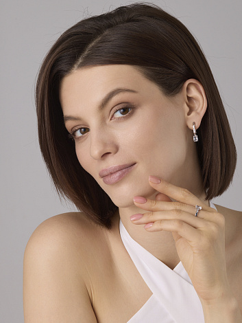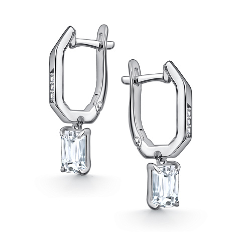 Удлинённые серебряные серьги 925 пробы с горным хрусталём и фианитами. Горный хрусталь отражает солнечные лучи своими гранями, создавая неповторимую игру света, а многочисленные мелкие фианиты добавляют украшению дополнительный объём и элегантность. Подходят как для офисного стиля, так и для праздников и вечеров, помогают завершить создание уникального образа и повысить самооценку. Представлено брендом АЛЬКОР. Средняя характеристика камней: 2 Горный хрусталь Белый Октагон 1,601, 6 Фианит Белый Круг 0,102 В комплект поставки входит: