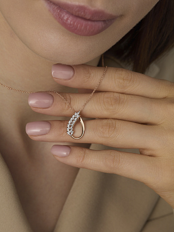 Элегантное колье выполнено из благородного сочетания красного и белого золота 585 пробы, украшено сверкающими бриллиантами