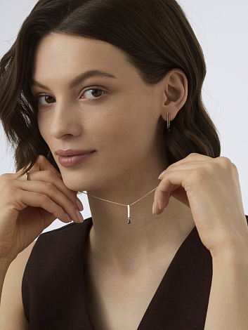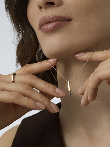 Элегантное колье выполнено из красного золота 585 пробы и украшено сияющим сапфиром