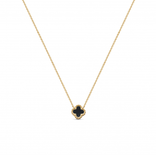 Элегантное колье выполнено из качественного красного золота 585 пробы в виде цепочки, украшено натуральным ониксом. Украшение отличается простотой и изысканностью, подчеркивая вкус и стиль своей обладательницы. Представлено брендом ROSE GRACE. Средняя характеристика камней: 1 Оникс Черный Цветок 6,00х6,00 В комплект поставки входит: