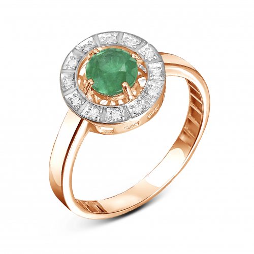 Изысканное кольцо выполнено из благородного сочетания красного и белого золота 585 пробы, украшено великолепным изумрудом и сверкающими бриллиантами