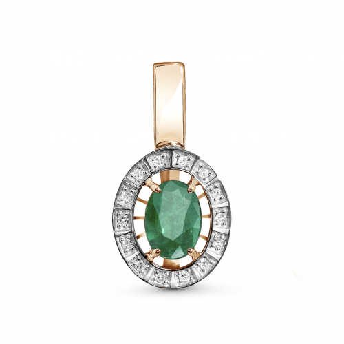 Элегантная подвеска выполнена из благородного сочетания красного и белого золота 585 пробы, украшена сверкающими бриллиантами и роскошным изумрудом