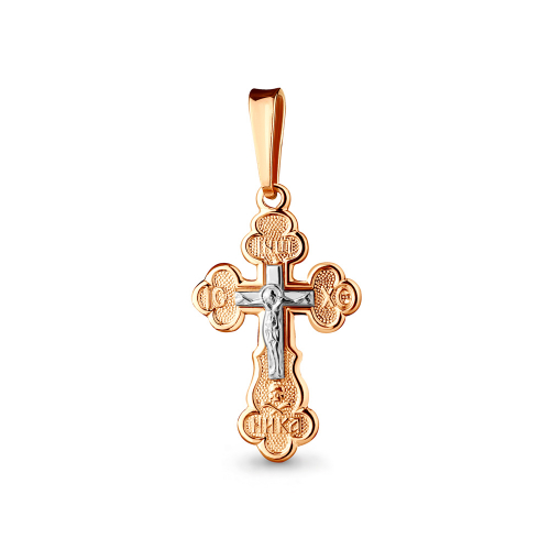 Православный крест выполнен в сочетании красного и белого золота 585 пробы, в нем исполнены все каноны Православной Церкви, на внешней стороне креста распятие, на обороте надпись "спаси и сохрани". В оформлении креста используется лазерная гравировка, которая придает ему уникальность.