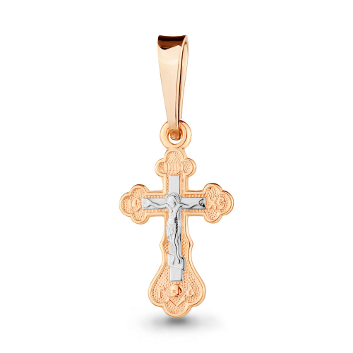 Крест выполнен в сочетании красного и белого золота 585 пробы, в нем исполнены все каноны Православной Церкви, на внешней стороне креста распятие, на обороте надпись "спаси и сохрани"
