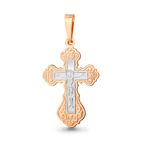 Православный крест выполнен в сочетании красного и белого золота 585 пробы