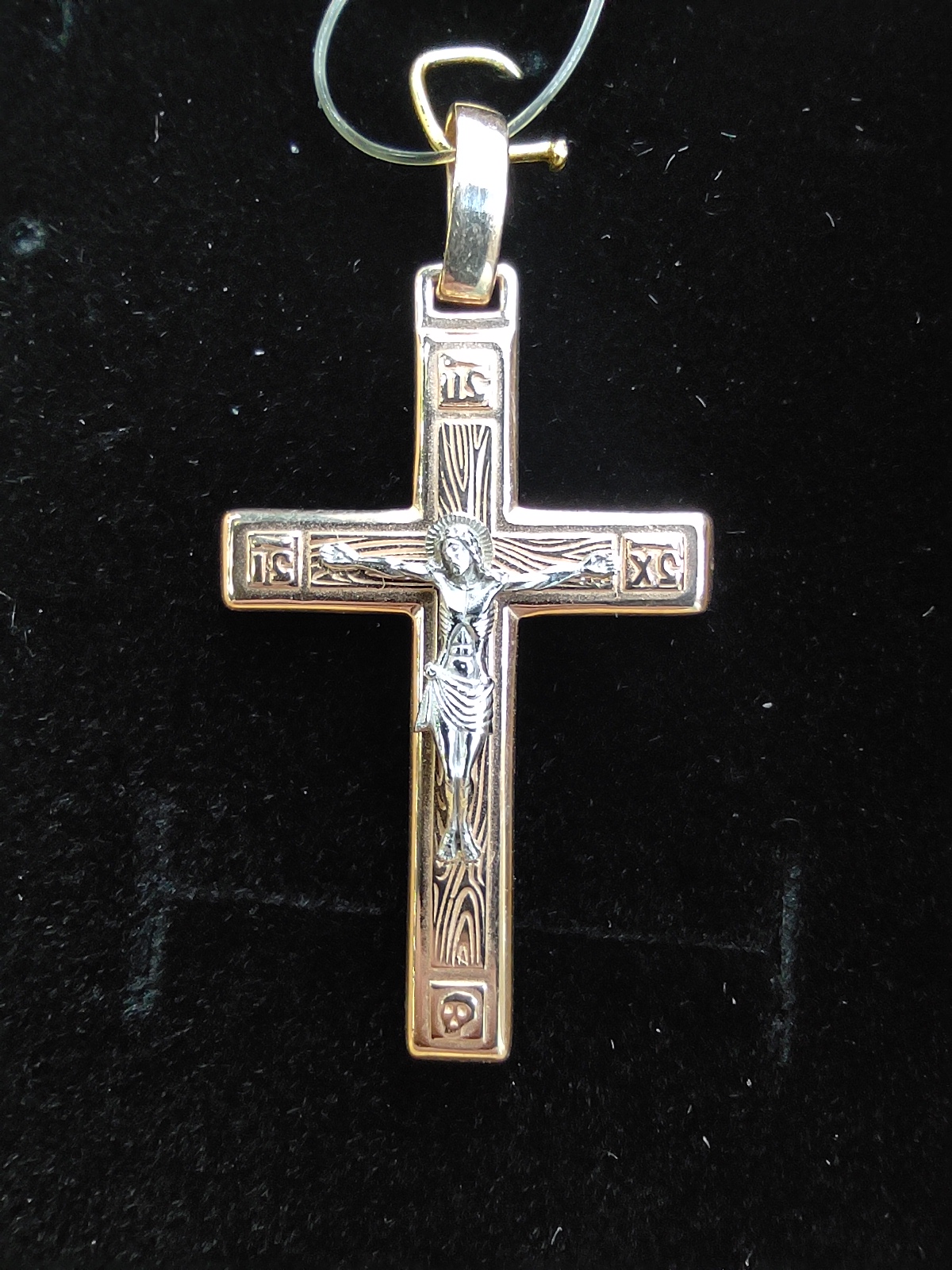 Православный крест, в котором исполнены все каноны Православной Церкви, выполнен в сочетании красного и белого золота 585 пробы