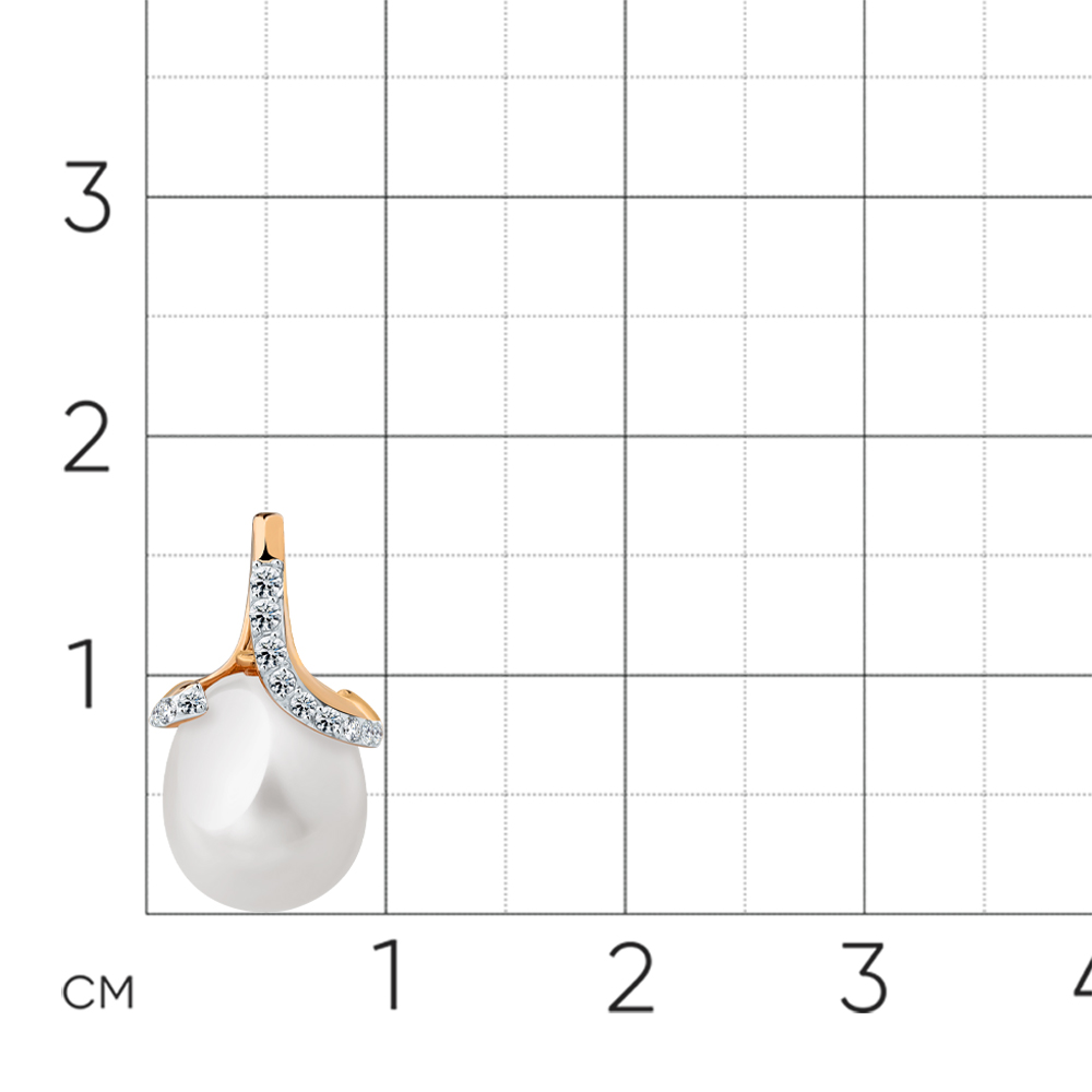 Элегантная подвеска выполнена из благородного сочетания красного и белого золота 585 пробы, украшена сверкающими фианитами и натуральным жемчугом