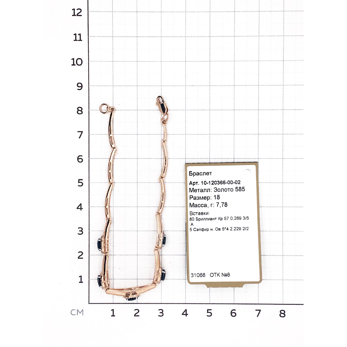 Элегантный браслет выполнен из качественного красного золота 585 пробы и украшен сияющими сапфирами и сверкающими бриллиантами