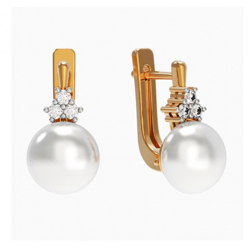 Элегантные серьги выполнены из благородного сочетания красного и белого золота 585 пробы, украшены натуральным жемчугом и сверкающими фианитами