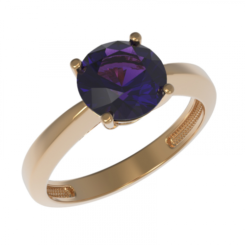 Элегантное кольцо выполнено из красного золота 585 пробы и украшено благородным аметистом, подчеркивая изысканность и индивидуальность