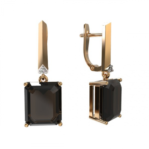 Серьги, комбинированное золото, раух-топаз, проба 585
