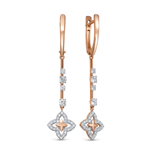 Элегантные и лаконичные, удлинённые серьги выполнены с сочетанием красного и белого золота 585 пробы, украшены сверкающими фианитами