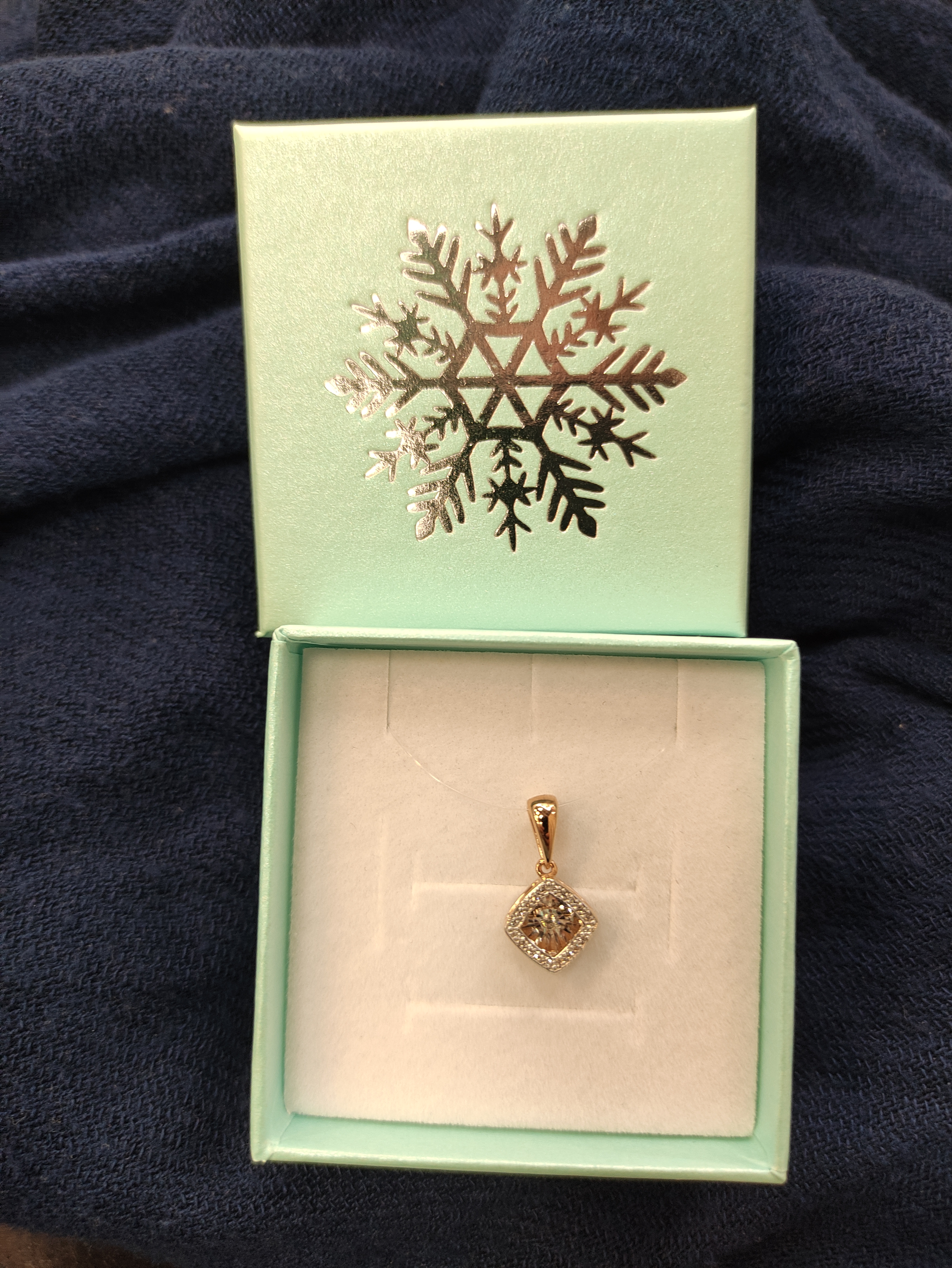 Очень красивая подвеска, она завораживает. На неё смотришь и взгляд оторвать трудно. Жаль на фото нельзя передать как дрожит бриллиант, но это невероятно красиво. Одену на Новый год, пока терплю и любуюсь))))