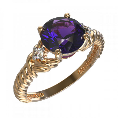 Элегантное кольцо выполнено из красного золота 585 пробы и украшено благородным аметистом и сверкающими фианитами, подчеркивая изысканность и индивидуальность