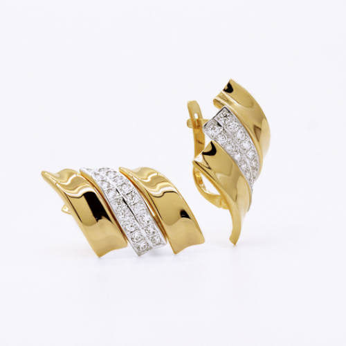 Потрясающие серьги выполнены из качественного красного и белого золота 585 пробы, гармонично сочетаясь с очаровательными вставками из сверкающих фианитов