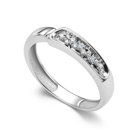 Стильное кольцо, украшенное дорожкой сверкающих бриллиантов, выполнено из белого золота 585 пробы