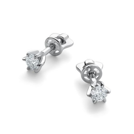 Серьги-пусеты выполнены из белого золота 585 пробы, украшены сияющими бриллиантами