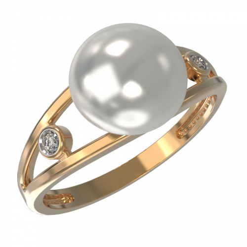 Элегантное кольцо выполнено из красного золота и украшено натуральным жемчугом и сверкающими фианитами