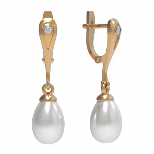 Элегантные серьги выполнены из красного золота 585 пробы и украшены натуральным жемчугом и сверкающими фианитами