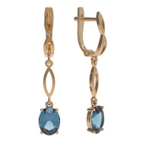 Серьги, красное золото, топаз, проба 585