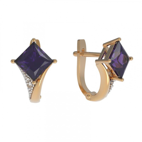 Элегантные серьги выполнены из красного золота 585 пробы и украшены благородным аметистом и сверкающими фианитами