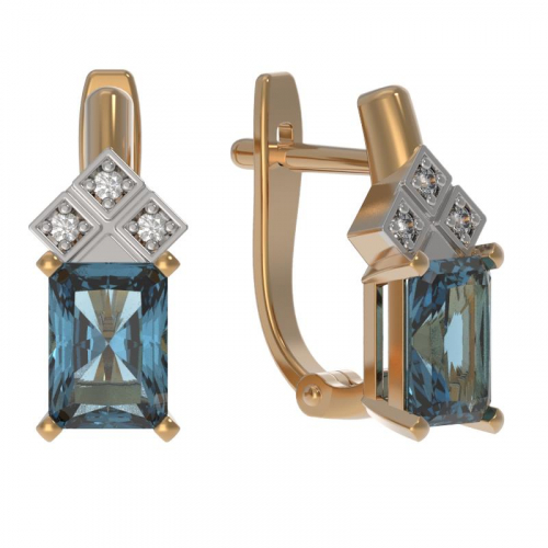 Элегантные серьги выполнены из благородного сочетания красного и белого золота 585 пробы, украшены сверкающими фианитами и ярким топазом