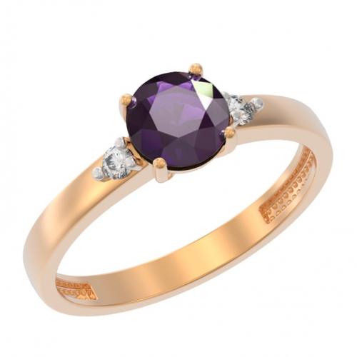 Элегантное кольцо выполнено из благородного сочетания красного и белого золота 585 пробы, украшено благородным аметистом и сверкающими бриллиантами