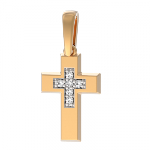 Элегантная подвеска выполнена из благородного сочетания красного и белого золота 585 пробы в форме креста и украшена сверкающими бриллиантами