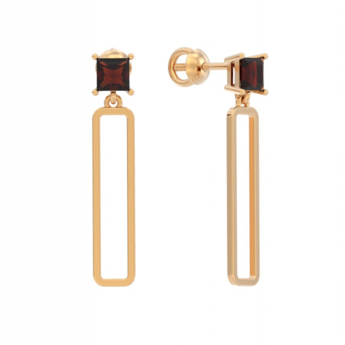 Удлиненные серьги-пусеты выполнены из красного золота 585 пробы и украшены сверкающими гранатами. Элегантный дизайн и благородный металл делают серьги стильным и изысканным дополнением к вашему образу. Представлено брендом АРИНА. В комплект поставки входит: