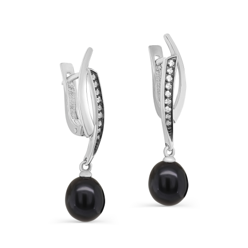 Удлинённые серьги с подвеской из чёрного жемчга выполнены из серебра 925 пробы