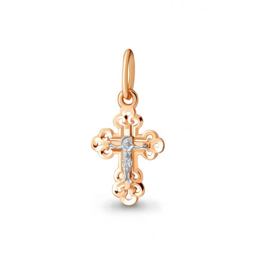 Православный крестик выполнен из благородного сочетания красного и белого золота 585 пробы