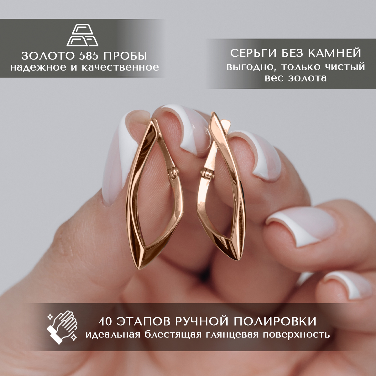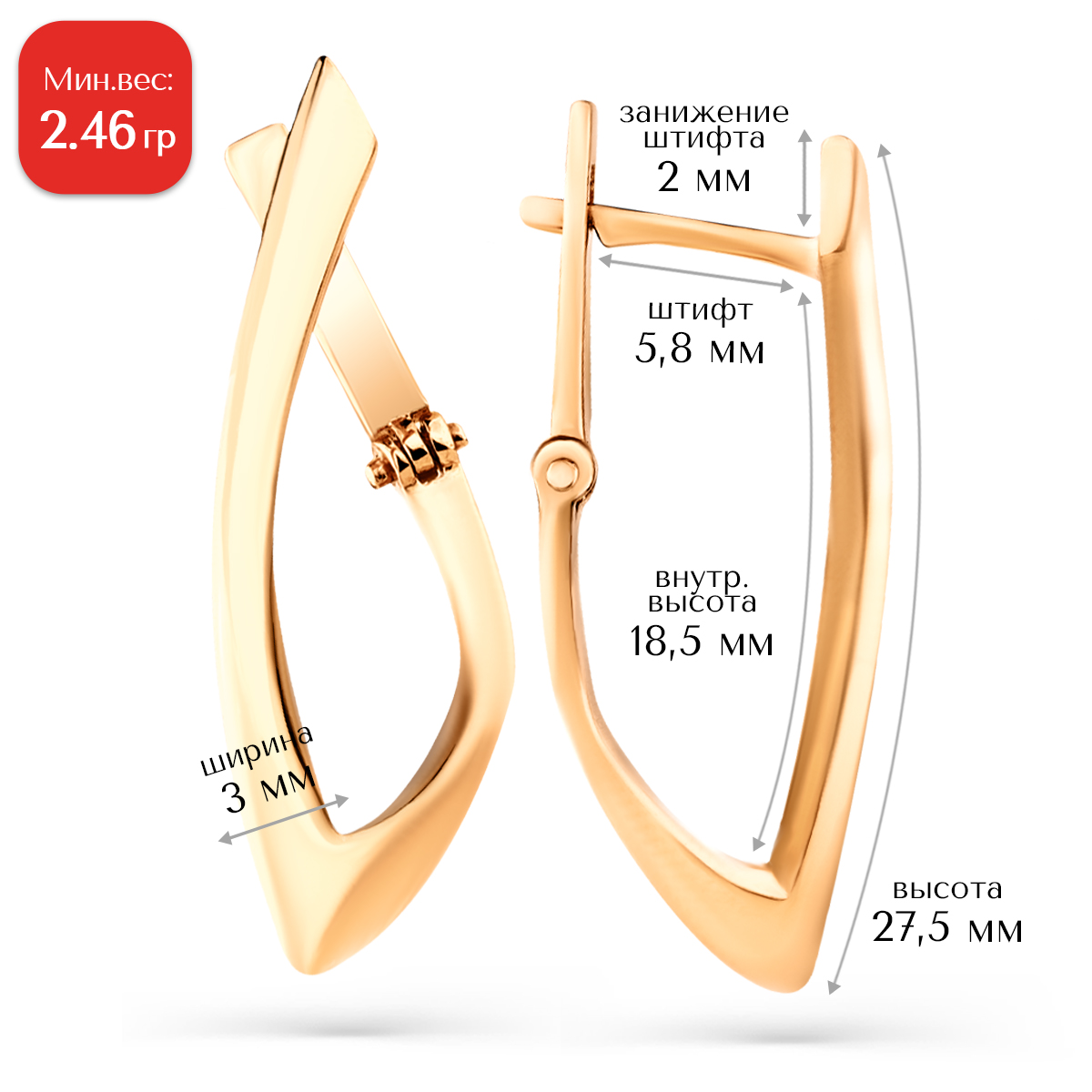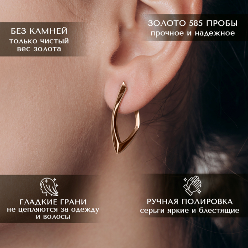 Оригинальные стильные серьги выполнены из красного золота 585 пробы