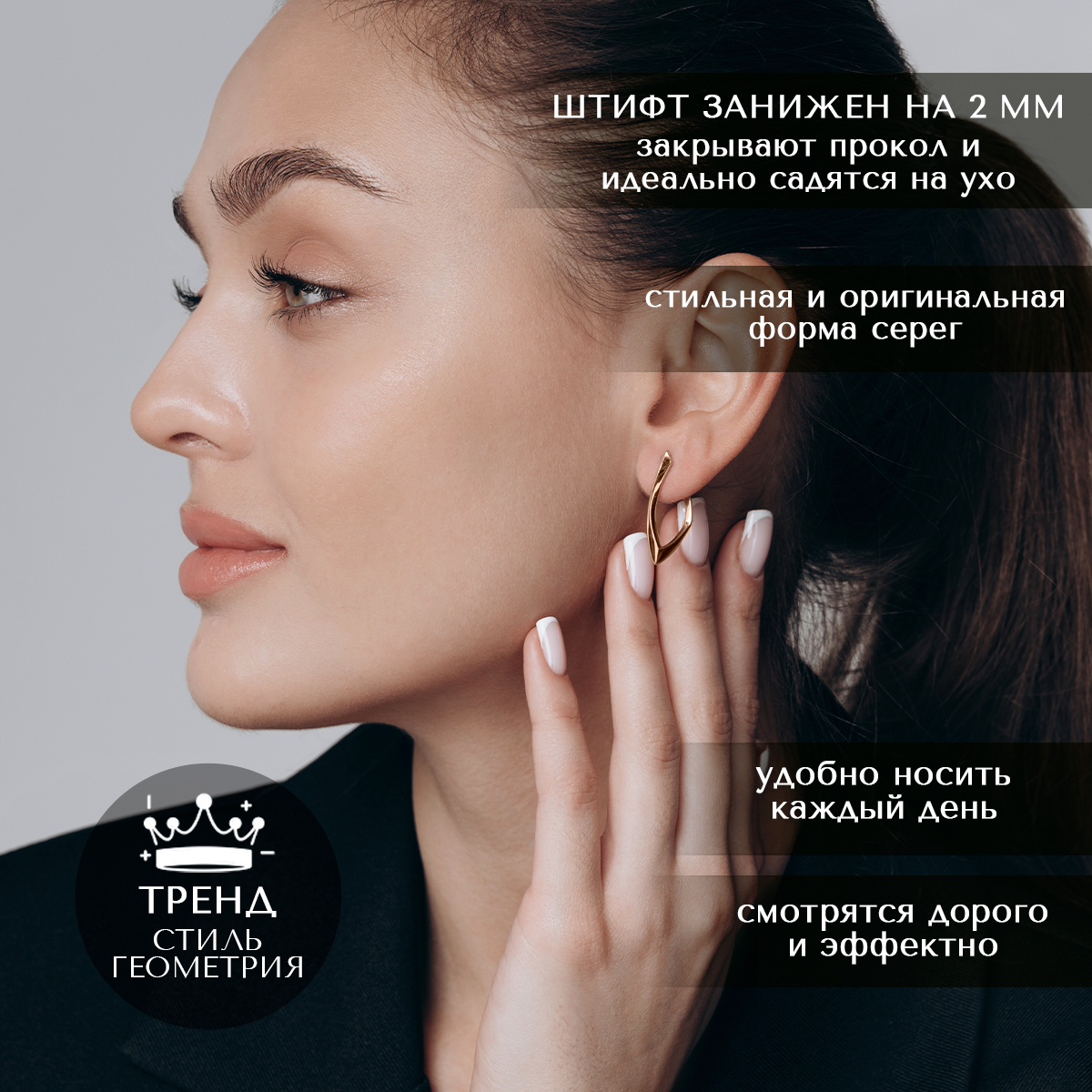 Стильные современные серьги. На витрины не понятные, а на ухе смотрятся так, что не смогла не купить. Классные. Теперь каждый день ловлю комплименты