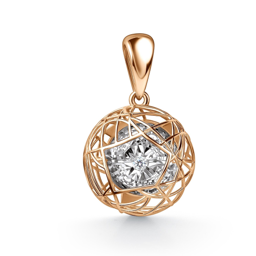 Уникальная подвеска исполнена из благородного сочетания красного и белого золота 585 пробы, украшена особым образом — в центре расположен очаровательный танцующий бриллиант