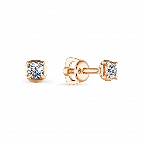Серьги-пусеты выполнены из красного золота 585 пробы, украшены сияющими бриллиантами.