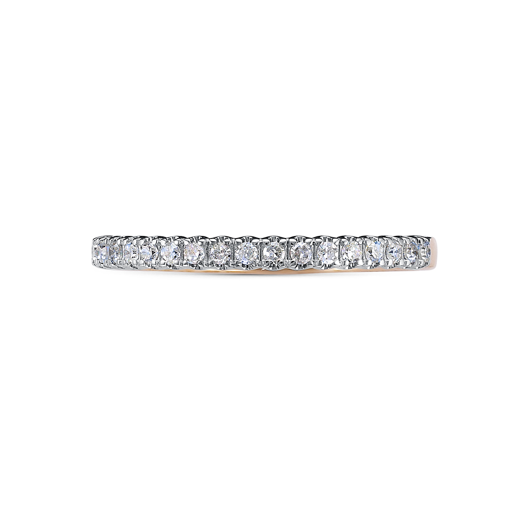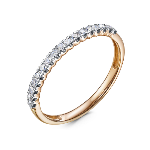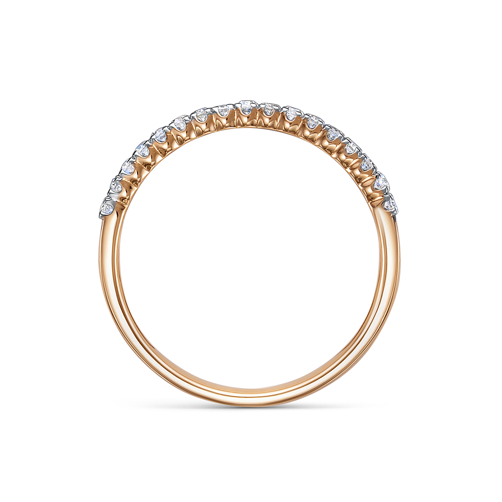 Кольцо, украшенное дорожкой сверкающих бриллиантов, выполнено из красного золота 585 пробы