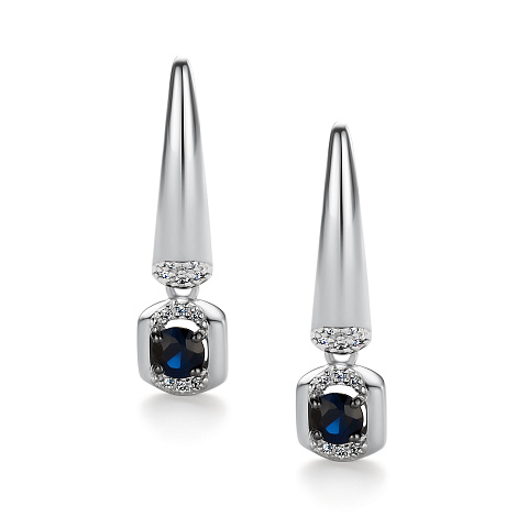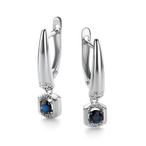 Серьги, белое золото, сапфир, проба 585
