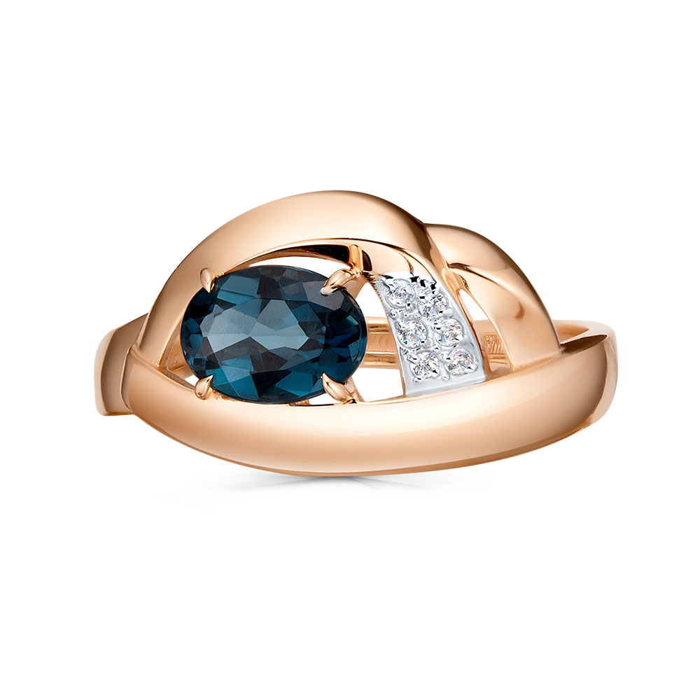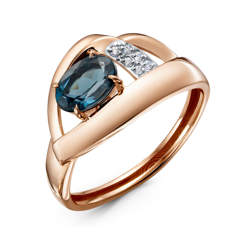 Кольцо, красное золото, топаз лондон, проба 585