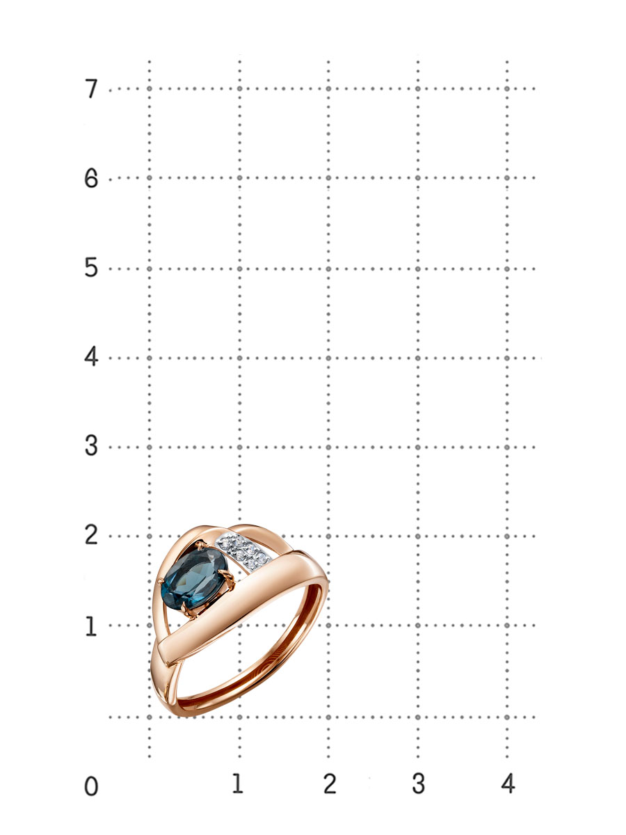 Фантастически красивое кольцо из отличного сочетания красного и белого золота 585 пробы украсил большой и ясный топаз глубокого Лондонского окраса, элегантно подчеркнутый мелкими фианитами. Тепло красного золота, элегантность белого и темно-голубой топаз составляют незабываемую гамму и создадут уютный ореол вокруг руки обладательницы. Представлено брендом ROSE GRACE. Средняя характеристика камней: 1 Лондон топаз Ов 7,00х5,00 - 0,858 ct.; 6 Фианит Кр 1,00 В комплект поставки входит: