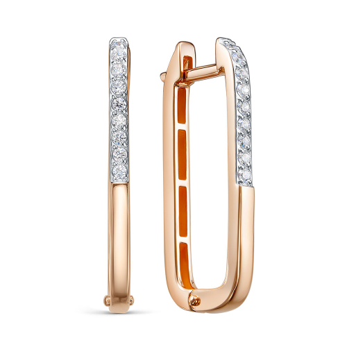 Гармоничные серьги, выполненные из благородного красного и белого золота 585 пробы, подчеркнуты сиянием фианитов