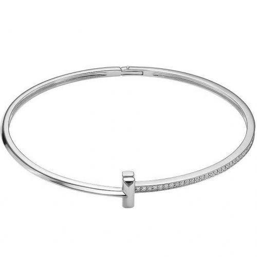 Роскошный браслет из белого золота 585 пробы представлен в современном дизайне с дорожкой сверкающих бриллиантов